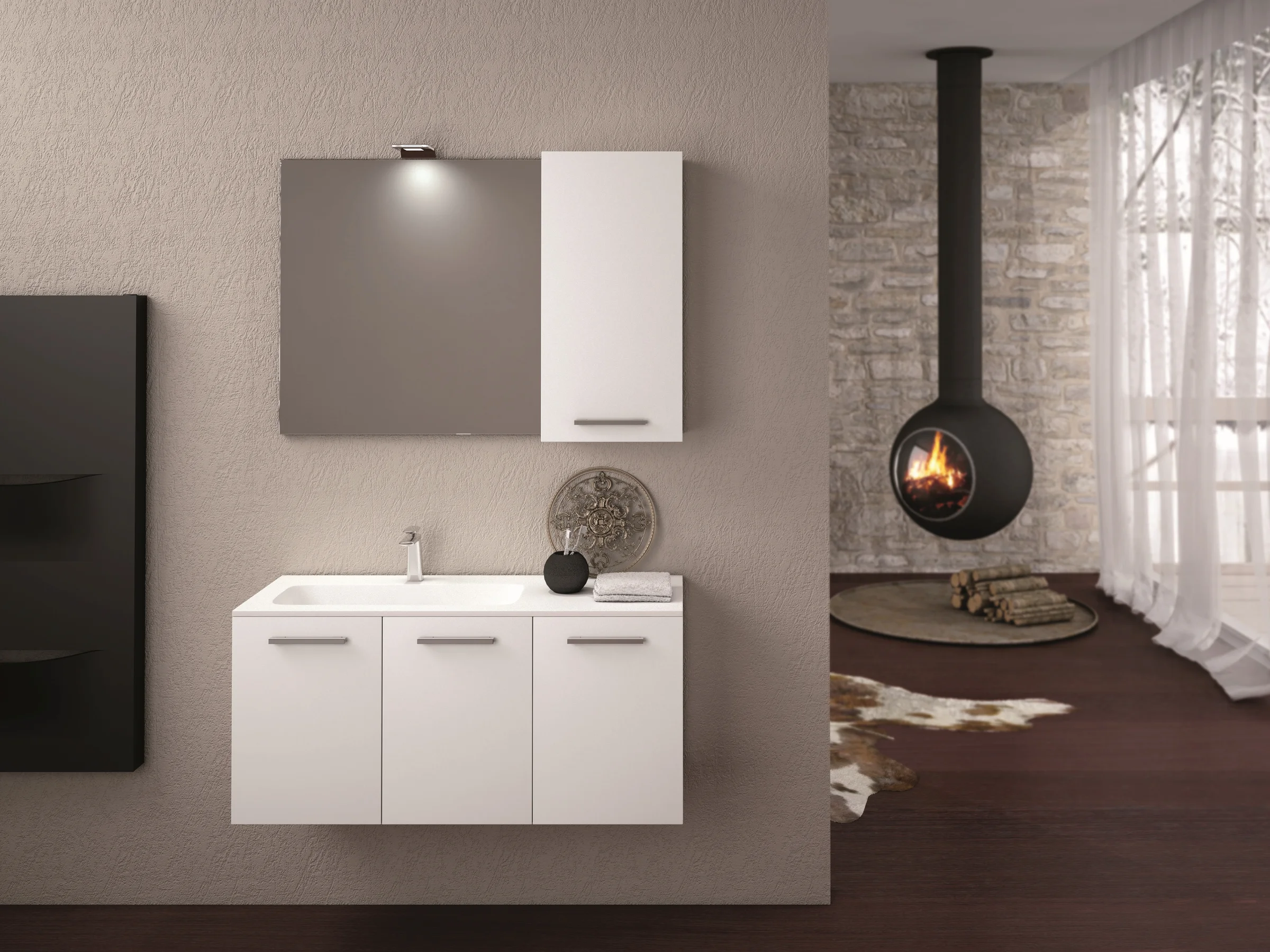 Kompakter Waschtisch OLA 07 in durchgehendem Weiß mit Mineraltek-Platte und schlichten Bügelgriffen