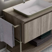 - Abgebildete Badmöbel-Oberfläche: Laminat Materic Sable Nuovolarie 114x (nicht mehr lieferbar, wir bieten zahlreiche Alternativen in vielen Holzoptiken)